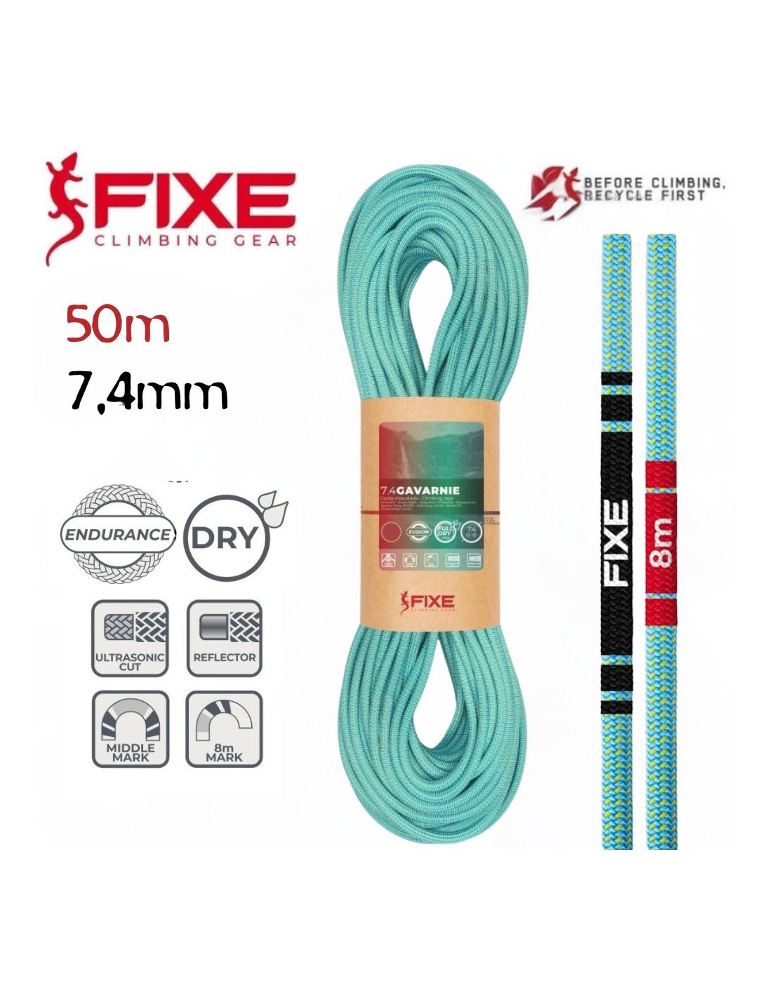 Gavarnie 7.4mm FULL DRY Fusion (Blue) (50m) - Cuerda doble y gemela- Fixe/Roca