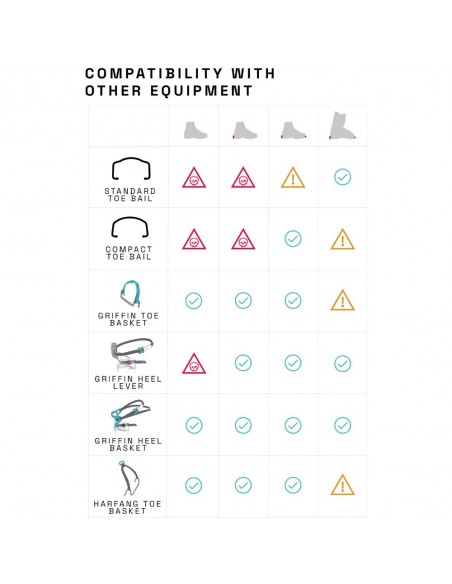 Son cadre en acier cromoly de 2 mm, ainsi que ses rails avant et arrière en 3D, permettent une pénétration efficace de la neige et de la glace. Le système universel de fixation de la ceinture permet un serrage sécurisé, et le verrouillage arrière avec micro-ajustement fournit précision et réglage fin. Il dispose également d'ABS avant et arrière pour empêcher les accumulations de neige et la livraison avec sac de transport.