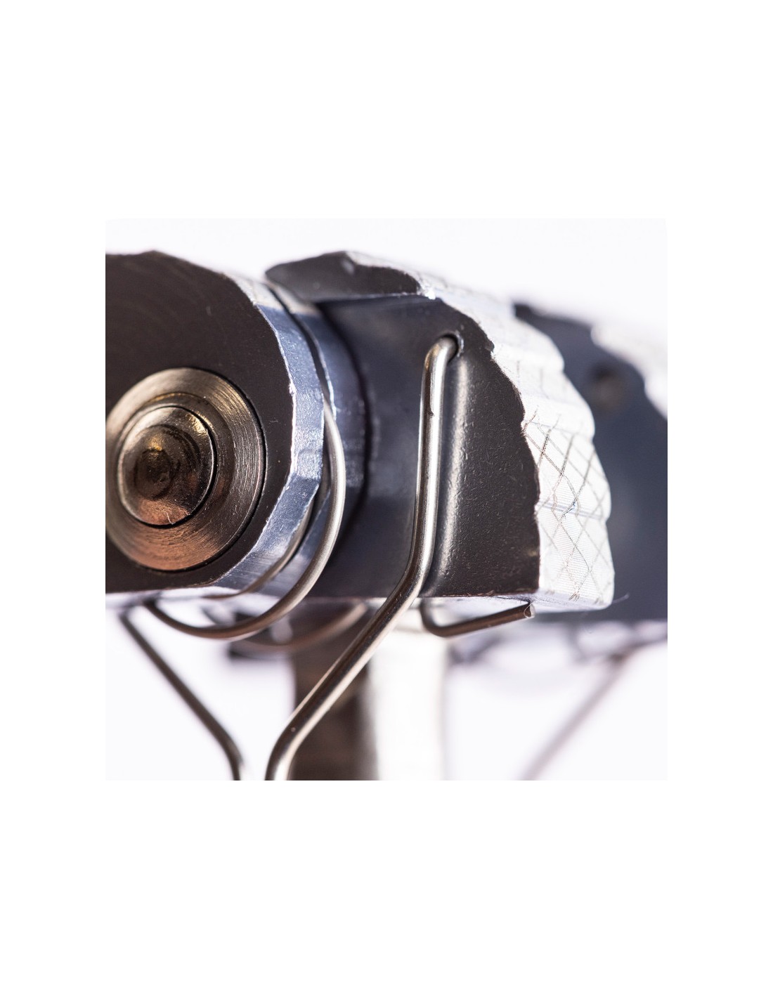- Eje con doble remache alineado con las levas. Levas redondeadas con tratamiento que incrementa la adherencia.