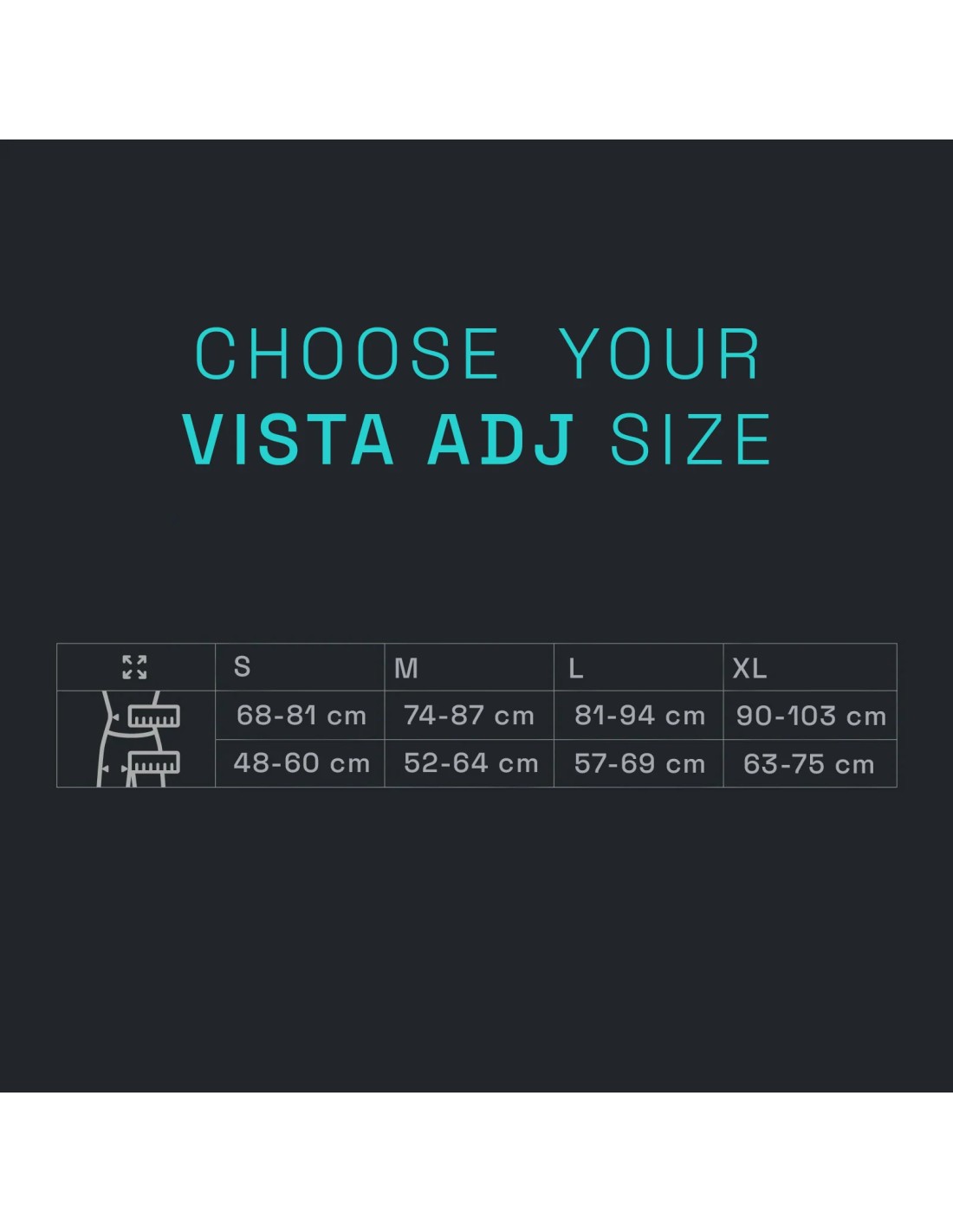 • Dimensions de la taille: S (68-81 cm/48-60 cm); M (74-87 cm/52-64 cm); L (81-94 cm/57-69 cm). Talla XL (90-103 cm / 63-75 cm)