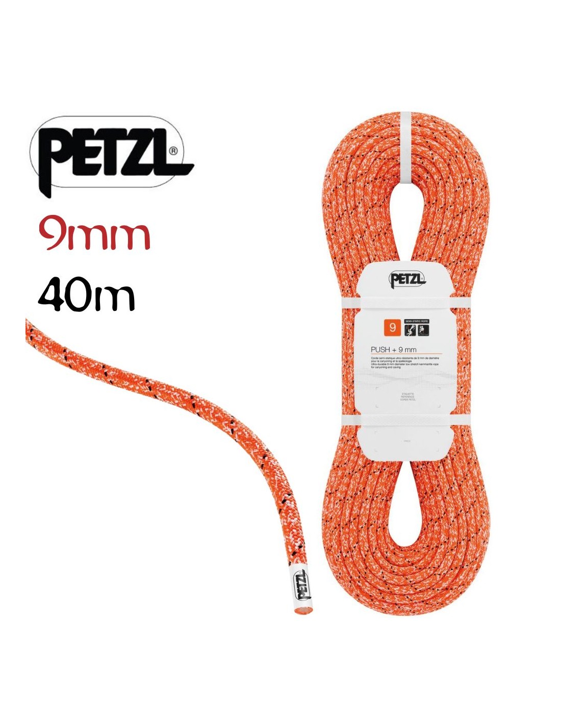 Push +  9mm (40m) Naranja - cuerda semiestática ultraresistente para espeleo - Petzl
