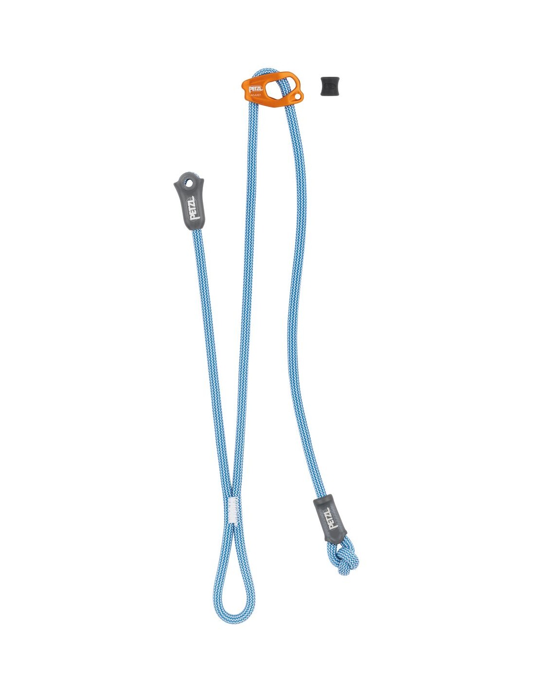 - Elemento de amarre de sujeción doble con un cabo fijo y un cabo regulable, idóneo para el descenso de barrancos, escalada en grandes itinerarios y alpinismo durante las maniobras de rápel.