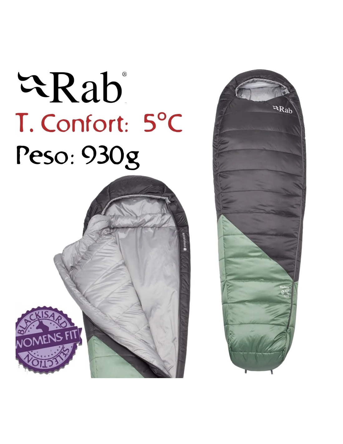 Radeon 0 Femmes LZ régulière (Dark Fig Green/Graphene) - Sac de couchage synthétique Femmes - Rab